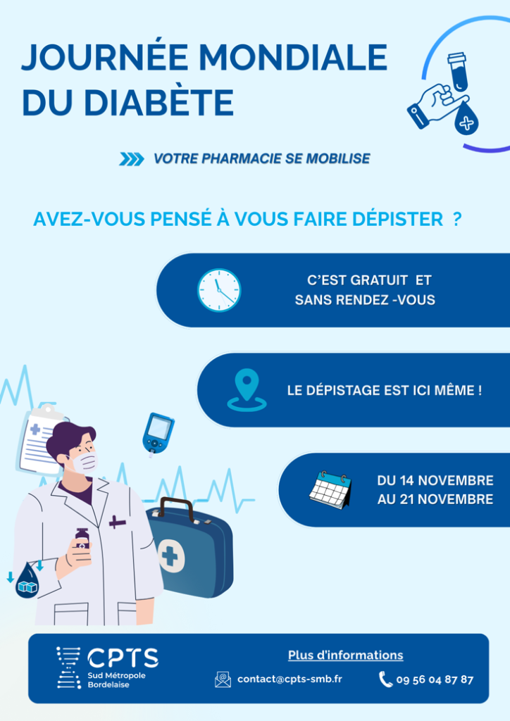 A l’occasion de la Journée mondiale du Diabète le 14 Novembre 2025, trois pharmacies du territoire se sont mobilisées pour proposer, pendant une semaine, des dépistages gratuits et sans rendez-vous.