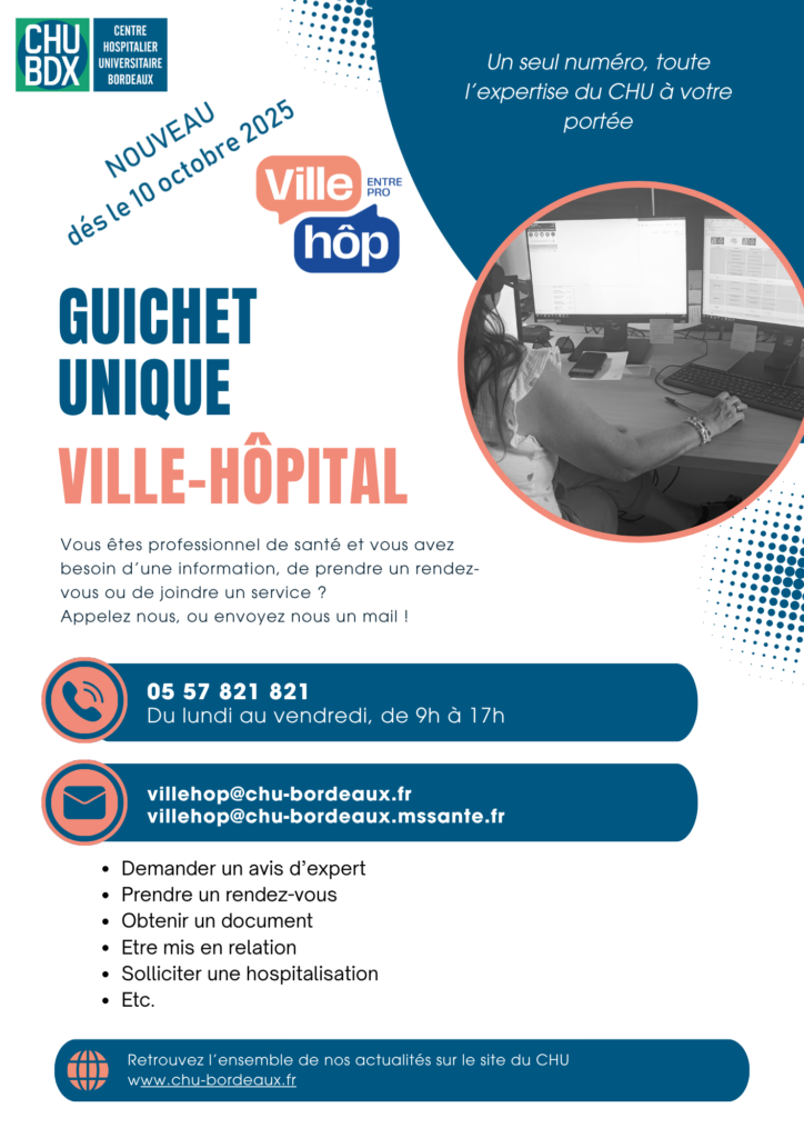 Les Professionnels de notre CPTS ont pu participer entre Juin et Octobre 2025 à la phase d’expérimentation du Guichet unique mis en place par le CHU de Bordeaux.