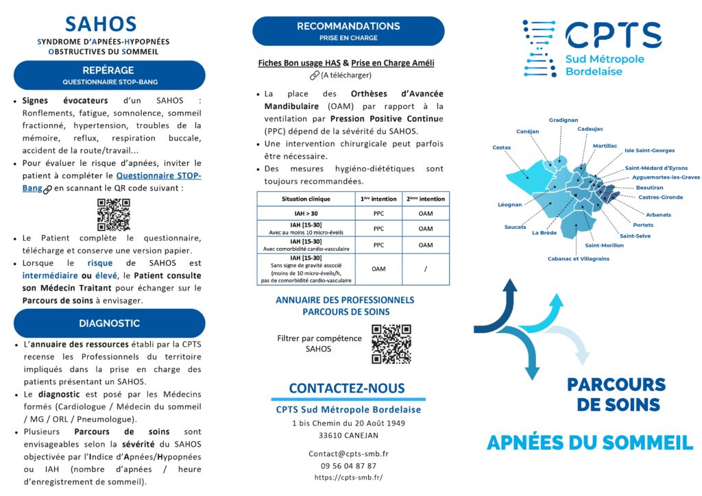 ✅ Une plaquette détaillant les différents parcours de soins selon la sévérité du SAHOS