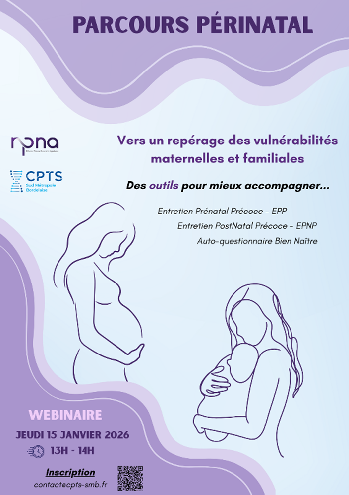 ➡️ Nous vous donnons rendez-vous en Janvier pour (re)dĂ©couvrir les outils d’aide Ă la pratique du repĂ©rage des vulnĂ©rabilitĂ©s maternelles et familiales et ainsi contribuer Ă amĂ©liorer la prise en charge globale des patientes du territoire.